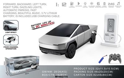 1:12跨境电商6通道2.4G遥控特斯拉新能源带充电桩灯光音乐赛博皮卡一键泊车 仿真车(包电)