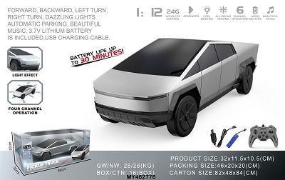 1:12跨境电商6通道2.4G遥控特斯拉新能源灯光音乐赛博皮卡一键泊车 仿真车(包电)