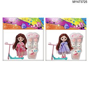【英文】6寸娃娃17厘米 13关节 实身3D眼可爱萝莉娃娃+自行车+吸塑配件 两款混装 90g