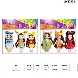 【英文】6寸娃娃17厘米 13关节 实身表情脸时尚可爱萌娃萝莉娃娃 三只装 两款混