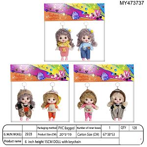 【英文】6寸15厘米 13关节 实身表情脸时尚可爱大脸萌娃萝莉娃娃+钥匙扣 两只装 三款混
